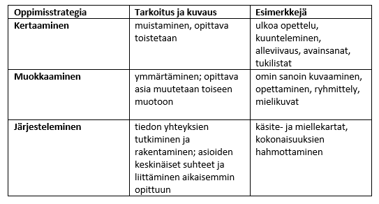 Oppimisstrategiat/-menetelmät tehostavat muistamista ja oppimista.
