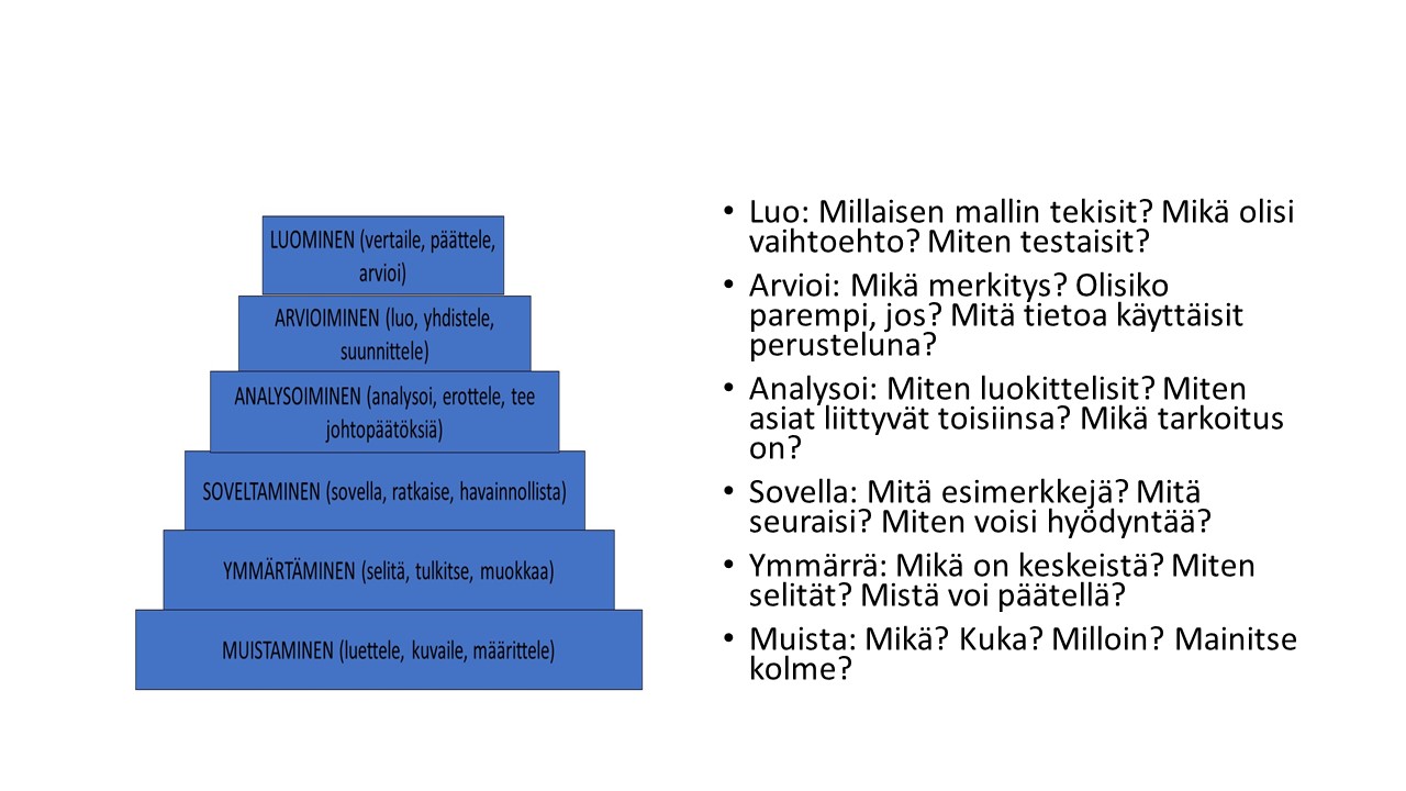 Bloomin taksonomiaa voi hyödyntää kysymysten käyttämisessä opiskelussa.