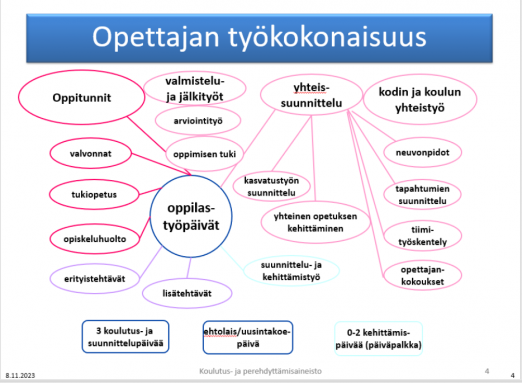 - Työn hallinnan parantamiseksi opettajan perustehtävää ja työn painopisteitä tulee käsitellä esimerkiksi kehityskeskusteluissa ja henkilökunnan yhteisissä kokouksissa.